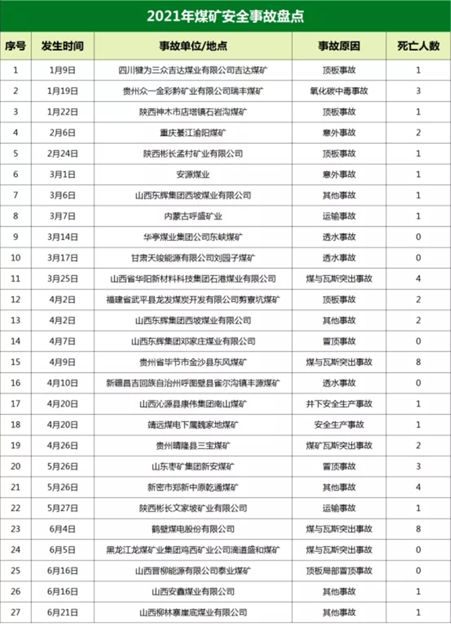 隨著國家政府的重拳出擊,煤礦安全問題取得了不錯的成績,國際能源網(wǎng)記者從2021年1月8日召開的全國礦山安全生產(chǎn)工作會議上獲悉,2020年共發(fā)生煤礦事故 122起、死亡225人,同比下降28.2%和28.8%;全年未發(fā)生重特大瓦斯事故,是新中國成立以來首次。據(jù)統(tǒng)計,2021年以來,我國共發(fā)生煤礦事故27起、死亡49人。其中,山西省作為產(chǎn)煤大省,也成為了煤礦事故的重災區(qū)。截至目前,山西省已發(fā)生8起煤礦事故。雖然煤礦事故總體數(shù)量在減少,但從能源全行業(yè)看,它依舊是事故高發(fā)的重災區(qū)。少報、瞞報煤礦事故的情況時有發(fā)生。