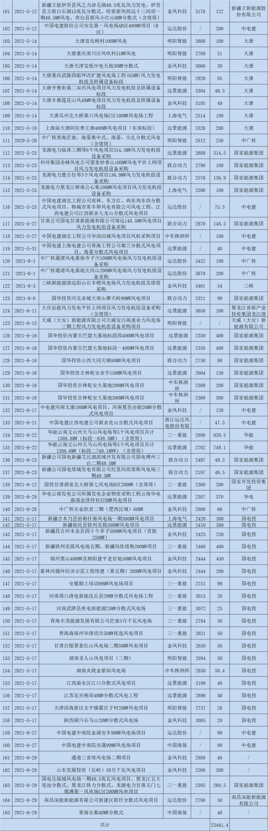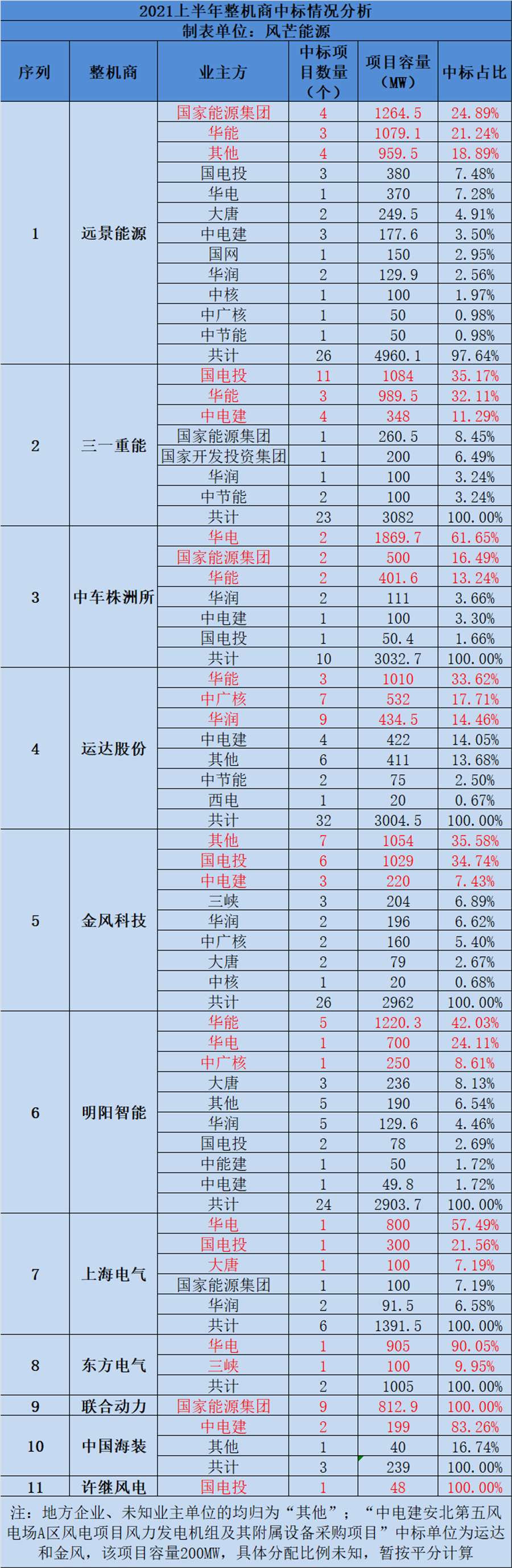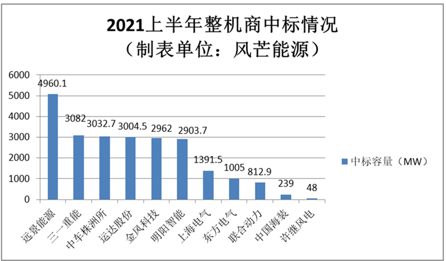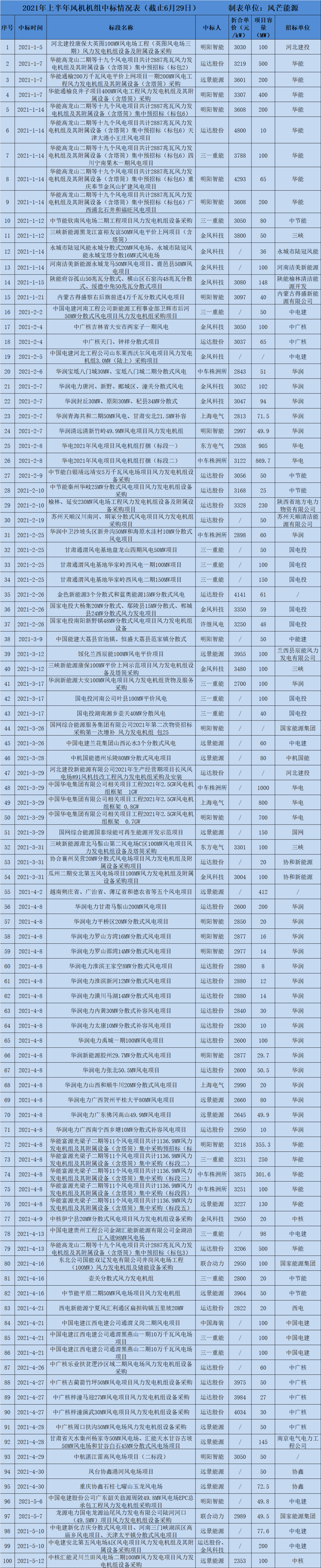 以下為風(fēng)芒能源統(tǒng)計(jì)的2021上半年整機(jī)中標(biāo)情況細(xì)表(工程量比較大,個(gè)別細(xì)節(jié)問(wèn)題請(qǐng)多包涵)