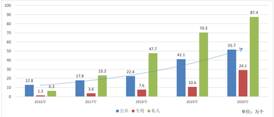本月,中國電動汽車充電基礎(chǔ)設(shè)施促進聯(lián)盟發(fā)布的《2020-2021年度中國充電基礎(chǔ)設(shè)施發(fā)展報告》(以下簡稱《發(fā)展報告》)顯示,2020年,我國充電基礎(chǔ)設(shè)施建設(shè)規(guī)模持續(xù)高速增長,截至2020年底,公共充電樁保有量數(shù)量79.8萬個,私人充電樁數(shù)量87.4萬個,建設(shè)規(guī)模持續(xù)保持世界首位。