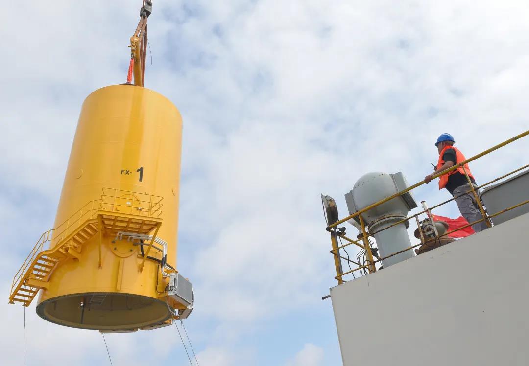 風(fēng)場(chǎng)首臺(tái)F1機(jī)位吊裝恰逢全年水文狀況最惡劣的大潮汛,海灣新能與金風(fēng)科技憑借多年海上風(fēng)電開發(fā)經(jīng)驗(yàn)和領(lǐng)先技術(shù),攜手克服了施工現(xiàn)場(chǎng)水流大、流速快等施工難點(diǎn),精準(zhǔn)鎖定作業(yè)窗口期,與各單位制定周密的施工計(jì)劃,安全、高效地確保項(xiàng)目建設(shè)如期完成。