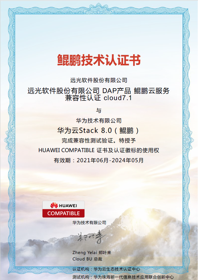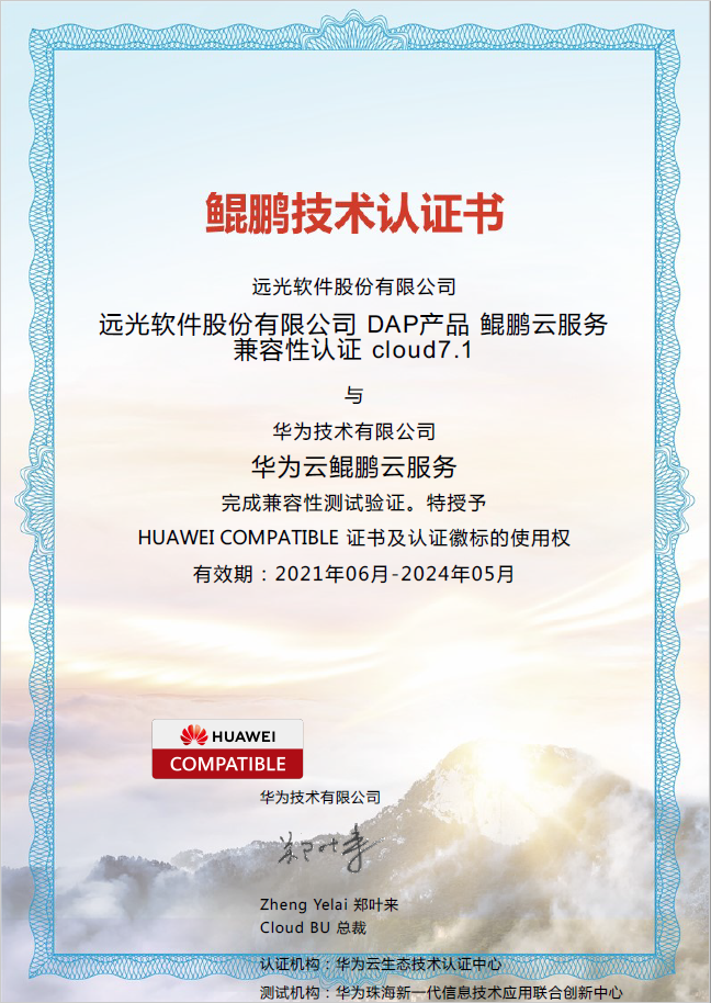 遠光達普(YG-DAP)基于華為云的鯤鵬服務(wù)器,成功通過了性能測試、兼容性測試、安全性測試等,滿足鯤鵬兼容性認證要求,驗證了系統(tǒng)能夠應(yīng)對不同業(yè)務(wù)場景時所使用基于鯤鵬云服務(wù)的性能需求,證明了系統(tǒng)具有高度完整性、強大開放性和兼容性,運行穩(wěn)定,完全適配國產(chǎn)設(shè)備以及系統(tǒng)平臺,滿足國產(chǎn)化安全可控的要求。