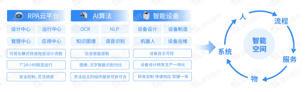 遠(yuǎn)光軟件自2015年開啟了人工智能領(lǐng)域的技術(shù)研究與應(yīng)用,與澳門科技大學(xué)共同成立了“人工智能聯(lián)合實(shí)驗(yàn)室”,與中德人工智能研究院達(dá)成戰(zhàn)略合作,以產(chǎn)學(xué)研深度融合加速對AI技術(shù)的探索及實(shí)踐化應(yīng)用,并通過聚焦客戶實(shí)際業(yè)務(wù)場景,推出了RPA云平臺、智能設(shè)備管理平臺和AI計(jì)算平臺等三大平臺及百余款軟硬件機(jī)器人,致力將用戶及業(yè)務(wù)場景中的人、流程、服務(wù)與物在內(nèi)的多個要素匯聚到智能空間,構(gòu)建人機(jī)共進(jìn)的智能生態(tài)系統(tǒng)。