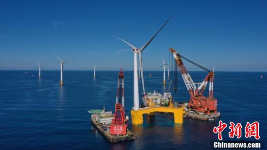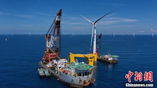 該座風(fēng)電機(jī)組最高可抗17級臺風(fēng),單機(jī)容量5500千瓦,每小時滿發(fā)電量可達(dá)5500度,每年可為3萬戶家庭提供綠色清潔能源電能。