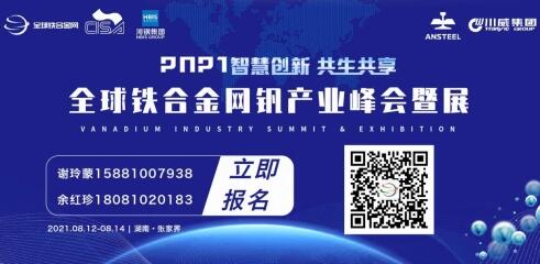 由全球鐵合金網(wǎng)主辦的「2021釩產(chǎn)業(yè)峰會暨展」將于8月12日-14日在湖南張家界碧桂園鳳凰酒店啟幕。本屆峰會以“智慧創(chuàng)新●共生共享”為主題,以突出“同期配套展覽" 為亮點,以探討釩產(chǎn)業(yè)鏈"為切口,旨在促進參會嘉賓的情感交流與業(yè)務(wù)分享,提升大家與平臺間的高互動、強交流,加強精密合作,合作共贏,倡導(dǎo)可持續(xù)發(fā)展。