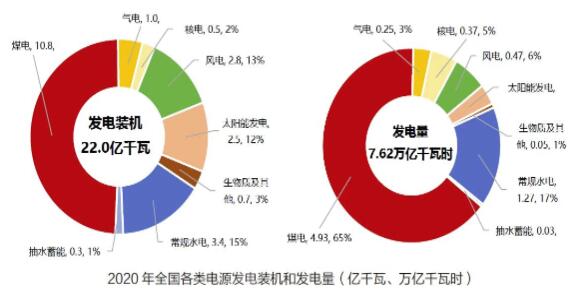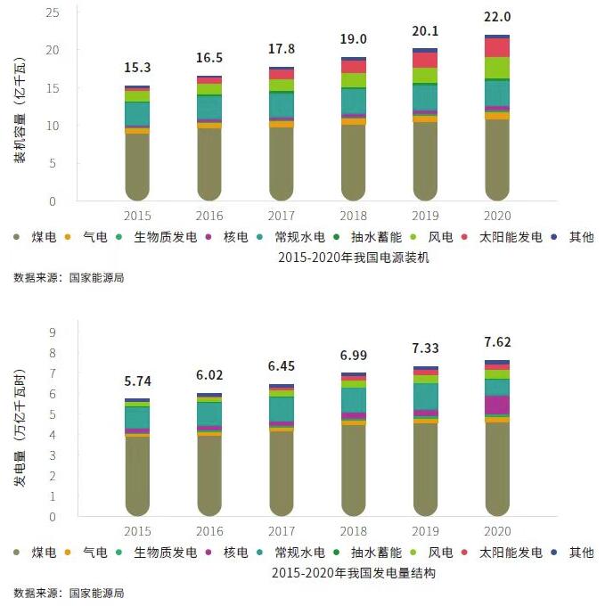 《中國電力發(fā)展報告2020》指出,“十三五”期間,我國電力裝機結(jié)構(gòu)持續(xù)優(yōu)化,電力工業(yè)綠色低碳轉(zhuǎn)型成效顯著。截至2020年底,非化石能源消費比重達(dá)到15.9%,超額完成“十三五”規(guī)劃目標(biāo);非化石能源裝機達(dá)到9.8億千瓦,占全國發(fā)電總裝機的45%;水電(含抽蓄)裝機達(dá)到3.7億千瓦;風(fēng)電、太陽能合計裝機達(dá)5.3億千瓦,生物質(zhì)發(fā)電裝機超過2700萬千瓦,均超額完成“十三五”規(guī)劃目標(biāo)。