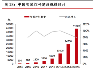 根據(jù)OFweek,川財證券研究所的數(shù)據(jù)顯示,從2014年到2021,我國智慧燈桿的數(shù)量都在逐年上漲,保守估計2021年我國智慧燈桿數(shù)量達(dá)到44460根。