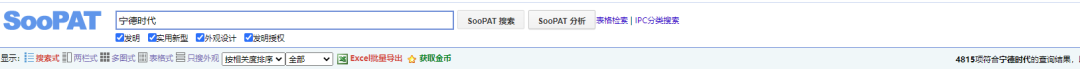 在SooPAT 專利搜索上,寧德時(shí)代有發(fā)明專利1736項(xiàng),實(shí)用新型專利2241項(xiàng),外觀設(shè)計(jì)52項(xiàng),發(fā)明授權(quán)專利786項(xiàng),合計(jì)4815項(xiàng)。