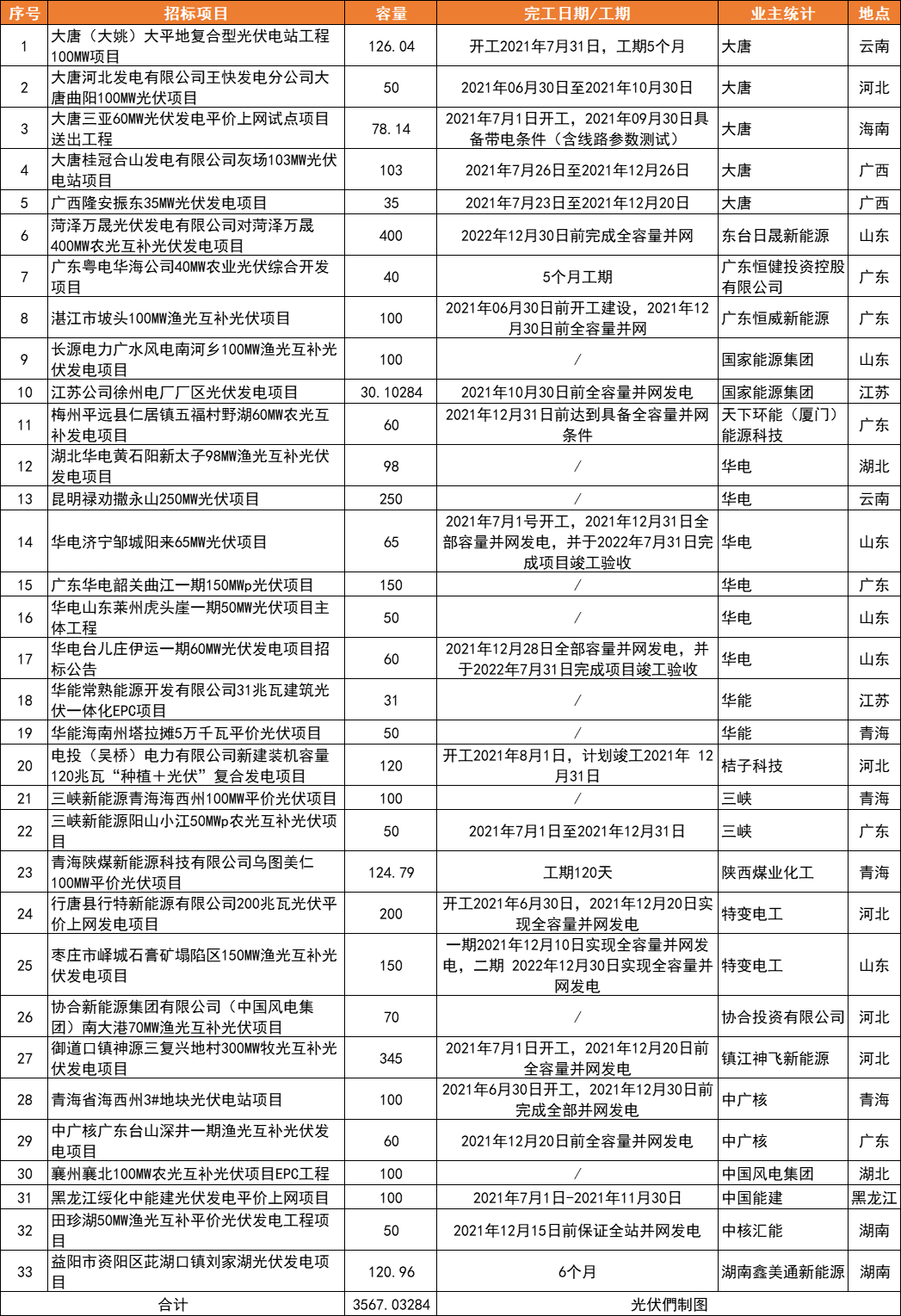 從統(tǒng)計項目的并網(wǎng)時間來看,大部分依然集中于2021年底前并網(wǎng),其中約1.5GW為2019年和2020年的存量項目;從統(tǒng)計的招標(biāo)容量來看,TOP 5分別是華電(673MW)、東臺日晟新能源(400MW)、大唐(392.18MW)、特變電工(350MW)、鎮(zhèn)江神飛新能源(345MW)。其中東臺日晟新能源400MW容量為菏澤萬晟400MW農(nóng)光互補光伏發(fā)電項目,該項目要求2022年12月30日前完成全容量并網(wǎng)。