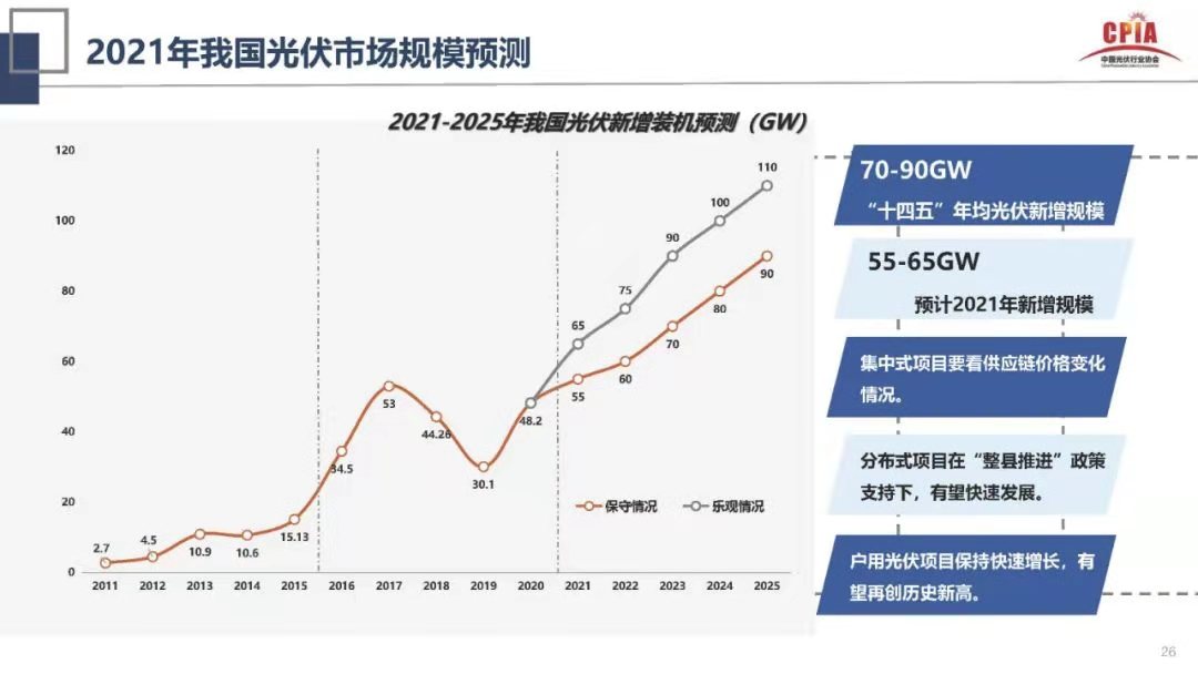 2021年是戶用光伏補貼時代的最后一年,據(jù)正泰安能總經(jīng)理盧凱預(yù)計,在逆變器芯片供應(yīng)相對平穩(wěn)的情況下,今年戶用裝機可能達到18-20GW,再創(chuàng)新高。戶用疊加工商業(yè)分布式,分布式光伏或?qū)⒊蔀橹谓衲晷略鲅b機的主力。