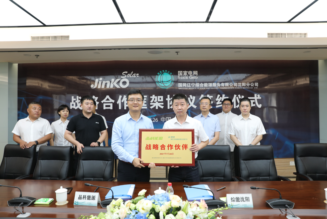 遼寧沈陽,2021年7月26日,全球極具創(chuàng)新力的光伏企業(yè)晶科能源宣布與國家電網(wǎng)遼寧綜合能源服務(wù)公司(“國網(wǎng)遼寧綜能”)簽署戰(zhàn)略合作框架協(xié)議,內(nèi)容包括設(shè)備采購及銷售、新能源服務(wù)與深化領(lǐng)域合作三大方面。合作雙方本著進(jìn)一步深化新能源行業(yè)合作、開拓能源運(yùn)營與服務(wù)市場的宗旨,就推進(jìn)能源產(chǎn)業(yè)高質(zhì)量發(fā)展、互利互贏拓寬服務(wù)領(lǐng)域等原則達(dá)成高度共識。