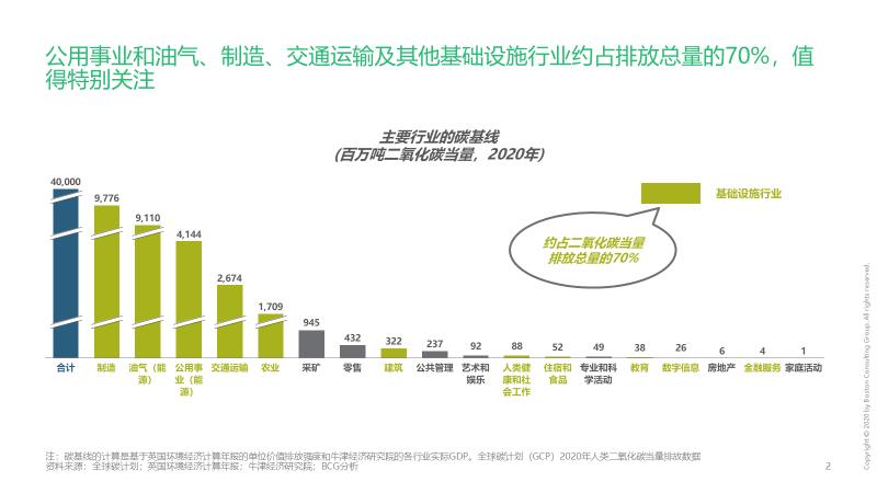 設計脫碳舉措也是企業(yè)規(guī)劃碳中和路線圖的關鍵一環(huán)。本次報告主要覆蓋交通運輸、農業(yè)食品、工業(yè)制造、建筑、數(shù)字信息、金融服務六大基礎設施行業(yè),據(jù)測算這六大行業(yè)占全球排放總量約70%,同時在人類社會中扮演著極為關鍵的角色,在凈零轉型進程中將對人類社會的方方面面產(chǎn)生舉足輕重的影響。