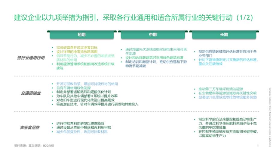《企業(yè)碳中和路徑圖——落實巴黎協(xié)定和聯(lián)合國可持續(xù)發(fā)展目標之路》報告共包括七大章節(jié):對當前世界各國針對碳中和議題出臺的相關法規(guī)及政策進行梳理;詳細介紹企業(yè)制定碳中和路線圖中的三大關鍵環(huán)節(jié):碳基線盤查、減排目標設定及減排舉措設計;收錄了來自美洲、歐洲、亞洲、非洲的55家企業(yè)先進實踐(包括34家聯(lián)合國全球契約組織會員企業(yè));聚焦能源使用側的排放最為密集的交通運輸、農業(yè)食品、工業(yè)制造、建筑、數(shù)字信息、金融服務六大基礎設施性行業(yè),詳細梳理六大行業(yè)各自實現(xiàn)減碳的關鍵舉措;深度剖析了7家行業(yè)代表企業(yè)的實踐案例。在此基礎之上,本報告總結出具有普適性的九大關鍵碳中和舉措,可以為來自各行各業(yè)的企業(yè)提供有力指導。同時,本報告也結合對各具體舉措重要性及易實現(xiàn)程度判斷,設計出六大行業(yè)覆蓋前、中、后期的行動路線圖,為企業(yè)制定屬于自己的碳中和路線圖提供有力參考。最后,本報告掘了9大氣候技術投資方向,為高瞻遠矚的企業(yè)在執(zhí)行碳中和路線圖的同時,提前布局、投資氣候科技,點出方向。