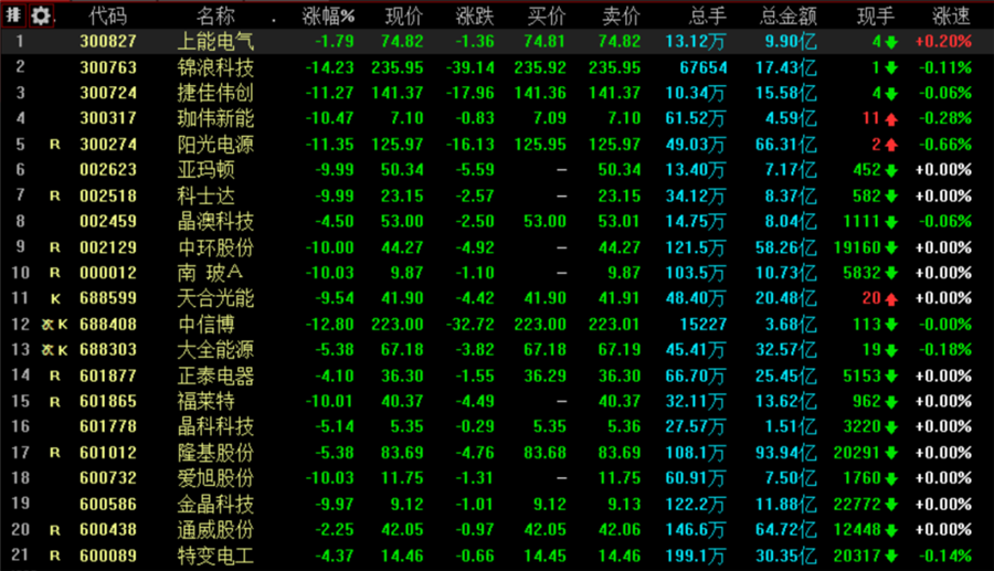 風(fēng)芒能源了解到,昨日,風(fēng)電產(chǎn)業(yè)鏈近乎“全線飄紅”。而光伏產(chǎn)業(yè)鏈則綠油油一片。