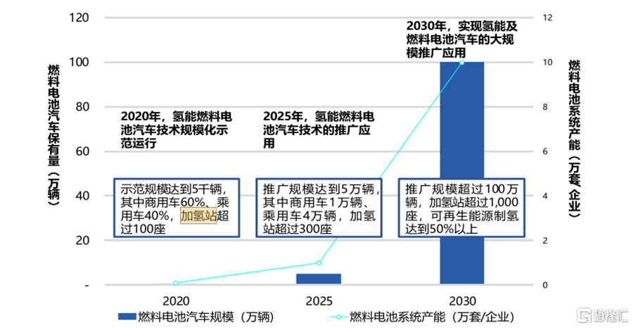比如《北京市氫燃料電池汽車產(chǎn)業(yè)發(fā)展規(guī)劃(2020-2025年)》提出:2023年前,力爭推廣氫燃料電池汽車3000輛、建成加氫站37座;2025年前,力爭實(shí)現(xiàn)氫燃料電池汽車?yán)塾?jì)推廣量突破1萬輛、再新建加氫站37座。