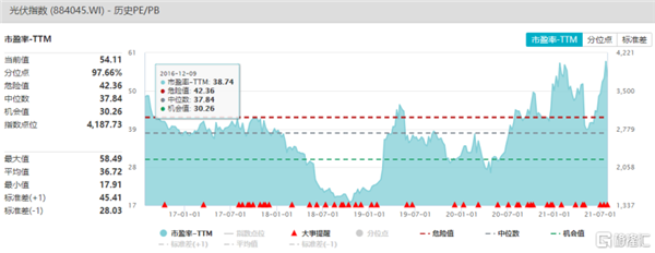 (光伏指數歷史PE分布,來源:Wind)