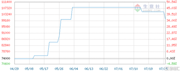 截至7月29日,國產多晶硅市場報價在10000元/噸,價格較先前的快速上漲出現環(huán)比下滑趨勢。