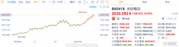其實,從2020年下半年開始,光伏指數就不斷走出犀利的上升趨勢,背后離不開新能源這一國家大政方針支持的產業(yè)扶持。