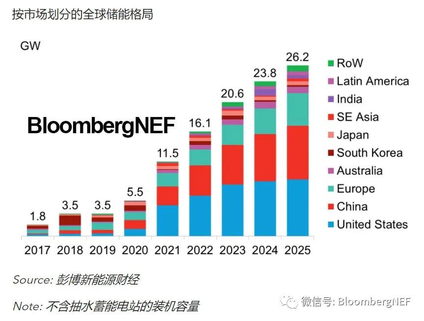 美國將是2021-2025年間的領(lǐng)跑者,在全球裝機(jī)量中的占比將達(dá)38%,其中加利福尼亞州、得克薩斯州和西南部地區(qū)領(lǐng)跑,而康涅狄格州和緬因州的儲(chǔ)能目標(biāo)也在提高。與此同時(shí),由于總統(tǒng)和國會(huì)都有意支持聯(lián)邦投資稅收抵免政策,市場情緒樂觀。