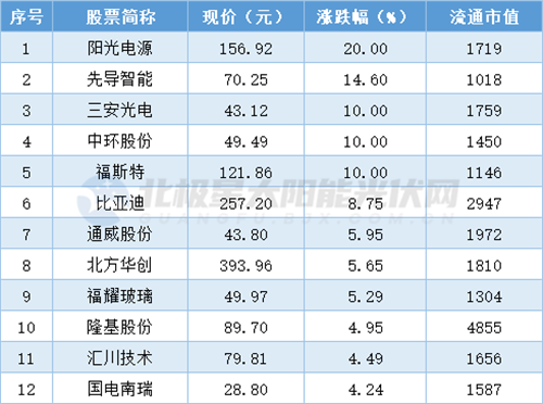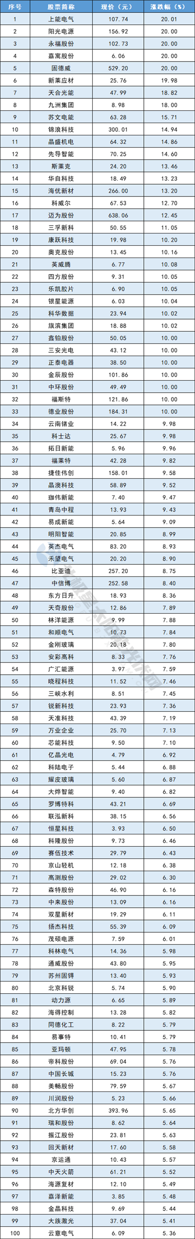 以下為漲幅排名前100強(qiáng)光伏企業(yè)