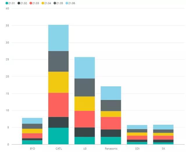 說(shuō)完新能源汽車的增長(zhǎng),再回到動(dòng)力電池的銷量數(shù)據(jù)。從來(lái)看,目前中國(guó)和韓國(guó)的電池供應(yīng)商都在持續(xù)上量。2021年上半年: