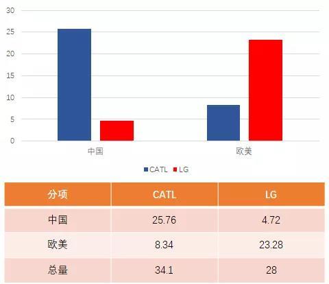圖3 LG 和CATL的量能對(duì)比