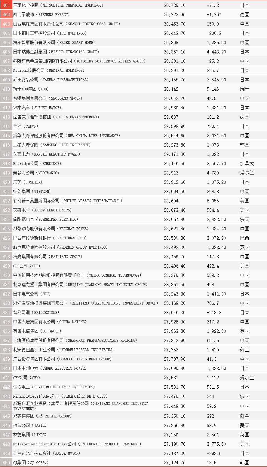 此外,在排名位次的變化上,今年上升最快的是晉能控股集團,大幅躍升325位,位列第138位;山東能源集團上升225名,位列第70位。但是需要注意的是,這兩家公司排名躍升均是由于幾家世界500強能源與礦業(yè)公司之間的重組合并。其中,山東能源集團與兗礦集團聯(lián)合重組。晉能控股來自多家世界500強的重組與整合,包括原同煤集團、晉煤集團、晉能集團和潞安集團等公司。