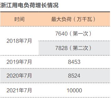 更大規(guī)模的增長(zhǎng)案例在浙江省。2018年7月,浙江省兩次突破歷史最高用電負(fù)荷,其中第一次突破歷史最高用電負(fù)荷是7640萬(wàn)千瓦;2021年7月最高用電負(fù)荷突破1億千瓦,增幅超過(guò)30%。