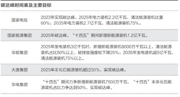 基于火電經(jīng)濟(jì)效益下滑,發(fā)電企業(yè)降低投資火電意愿。“2030年碳達(dá)峰、2060年碳中和”戰(zhàn)略的實(shí)施,讓發(fā)電企業(yè)進(jìn)一步降低了投資火電的動(dòng)力。為實(shí)現(xiàn)“雙碳”目標(biāo),發(fā)電集團(tuán)均提高可再生能源投資規(guī)劃。