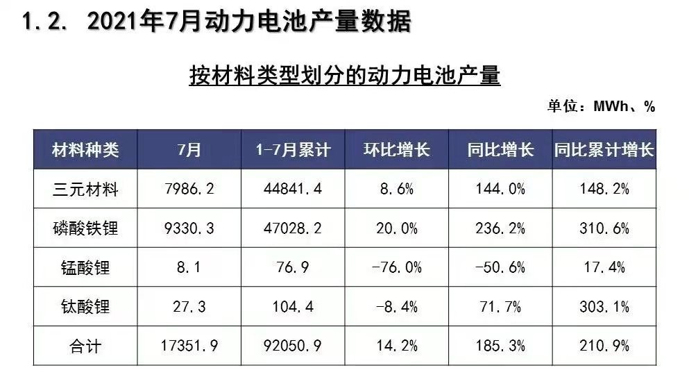 今年前7個月,動力電池領域的磷酸鐵鋰電池總產(chǎn)量也已超過三元電池。2018年-2020年,國內(nèi)磷酸鐵鋰電池的年產(chǎn)量均低于三元電池。