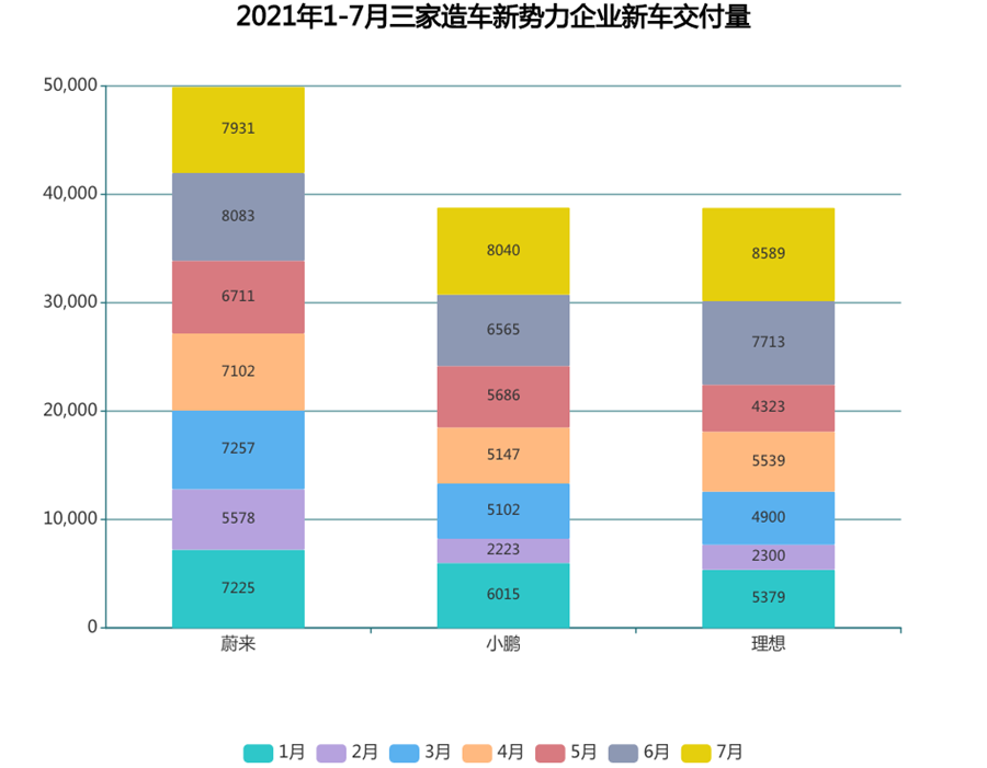 最近公布的(未計入Q2)7月份交付數(shù)據(jù)更是令人大跌眼鏡:蔚來直接被理想、小鵬反超,三者的交付數(shù)據(jù)分別是7,931輛、8,589輛、8,040輛。