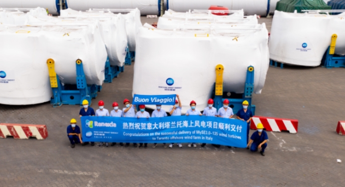 近日,采用明陽智能MySE3.0-135海上風(fēng)機(jī)的意大利塔蘭托項目順利交付,即將從天津港運(yùn)往項目所在地,預(yù)計9月底前抵達(dá)。這是中國海上風(fēng)機(jī)首次進(jìn)軍歐洲市場,對于中國風(fēng)電行業(yè)和明陽智能來說都是一項重大突破。