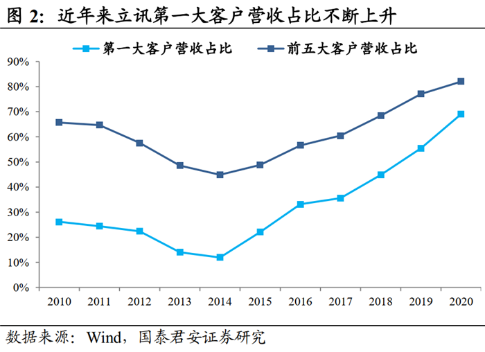 不過,深度綁定蘋果也是一把雙刃劍(2020年第一大客戶收入占比69%),中美貿(mào)易摩擦帶來的不確定性可能造成立訊業(yè)績和估值的雙殺,值得我們警惕。不過,公司優(yōu)秀的資源整合能力和跨行業(yè)的管理能力值得我們研究。
