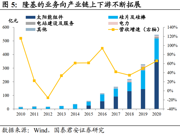 如果說立訊是通過并購不斷拓展自己的能力圈將觸手伸向消費電子的各個細分領(lǐng)域,隆基股份(隆基轉(zhuǎn)債)則是在專注主業(yè)的基礎(chǔ)上穩(wěn)健擴張成為光伏行業(yè)的巨人。