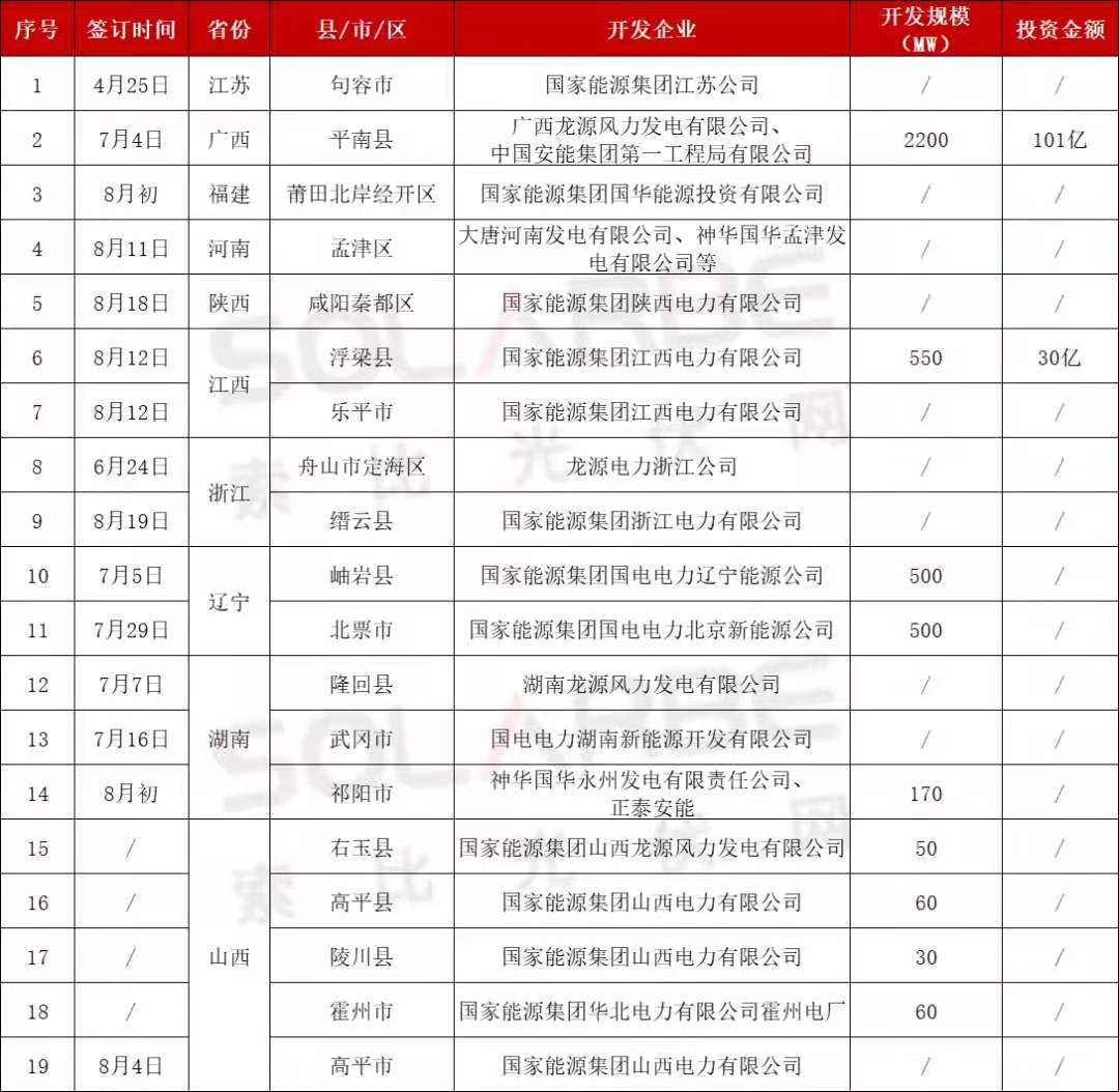 索比光伏網(wǎng)據(jù)公開數(shù)據(jù)統(tǒng)計,截至目前,國家能源集團已經(jīng)拿下了19個縣/市/區(qū)整縣推進名額,分別位于江蘇、廣西、福建、河南、陜西、江西、浙江、遼寧、湖南、山西十省,規(guī)模超4.12GW。