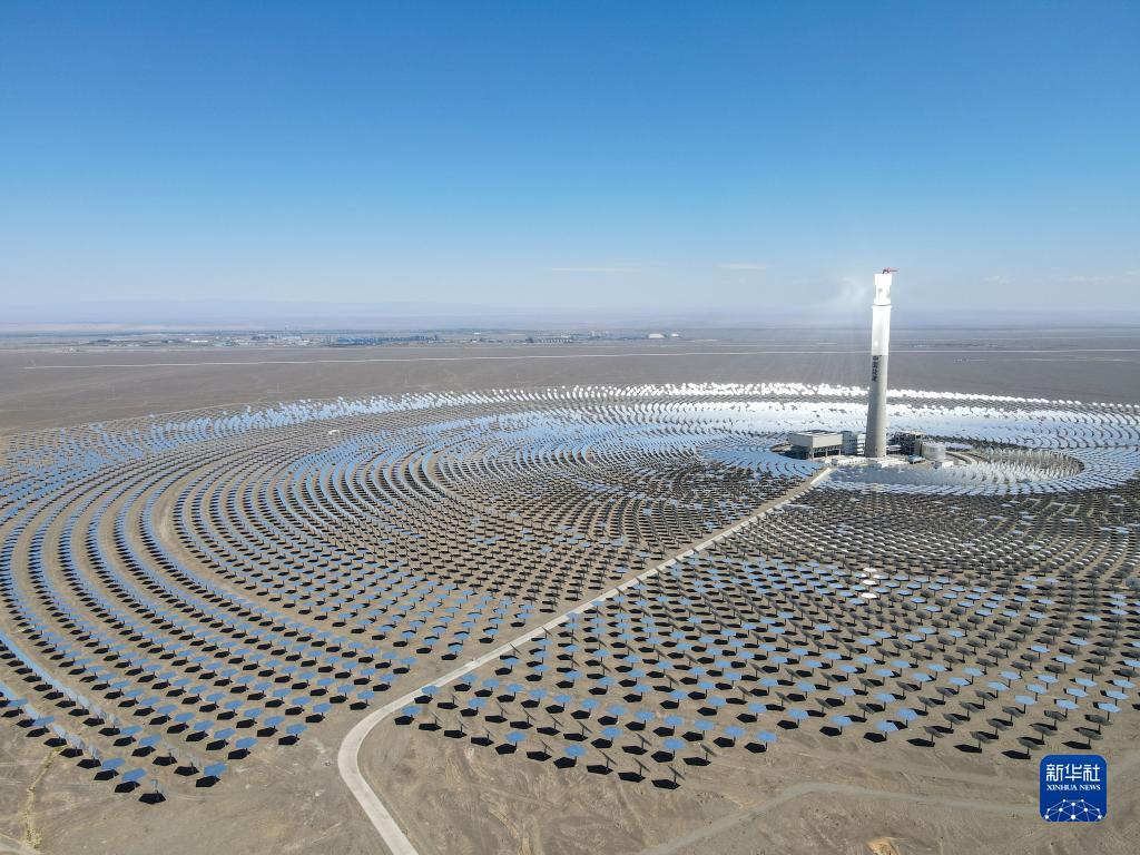 8月25日是全國低碳日。在新疆伊吾縣淖毛湖鎮(zhèn)的茫茫戈壁里,百米高塔巍然聳立,萬余面定日鏡“逐日”而動。作為新疆第一座光熱發(fā)電站,哈密50兆瓦熔鹽塔式光熱發(fā)電站不僅污染物零排放,還通過儲存熱能實現(xiàn)24小時持續(xù)發(fā)電。向陽而生、因光而興,發(fā)電站將清潔能源送進(jìn)千家萬戶的同時,也猶如一座“燈塔”,為新疆綠色低碳發(fā)展指引方向,帶來更多可能。