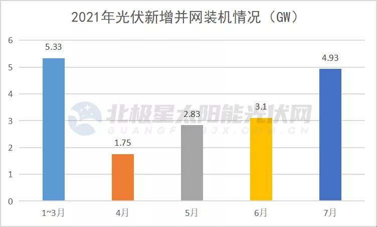 國(guó)家能源局1-7月份全國(guó)電力工業(yè)統(tǒng)計(jì)數(shù)據(jù)顯示,1~7月全國(guó)太陽(yáng)能發(fā)電新增裝機(jī)17.94GW,除去前六月數(shù)據(jù),則7月新增裝機(jī)達(dá)到4.93GW,遠(yuǎn)超前6個(gè)月的單月數(shù)據(jù),光伏終端市場(chǎng)需求大幅度“回暖”。