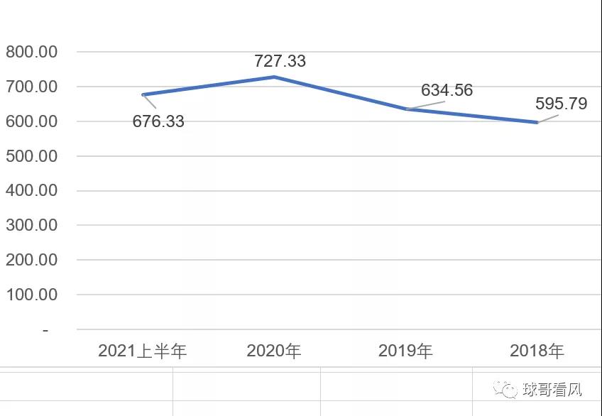 我們同時(shí)也發(fā)現(xiàn),葉片的價(jià)格確實(shí)非常令人堪憂,在平價(jià)風(fēng)電主機(jī)價(jià)格一路狂飆的形勢(shì)下,仍然保持高位。根據(jù)中材科技2018年以來的年報(bào)和中報(bào)數(shù)據(jù),統(tǒng)計(jì)分析了一下其葉片的單位千瓦銷售價(jià)格,其價(jià)格竟然高達(dá)676元/kw,與2020年的727元價(jià)格相比,下降幅度僅為7%。