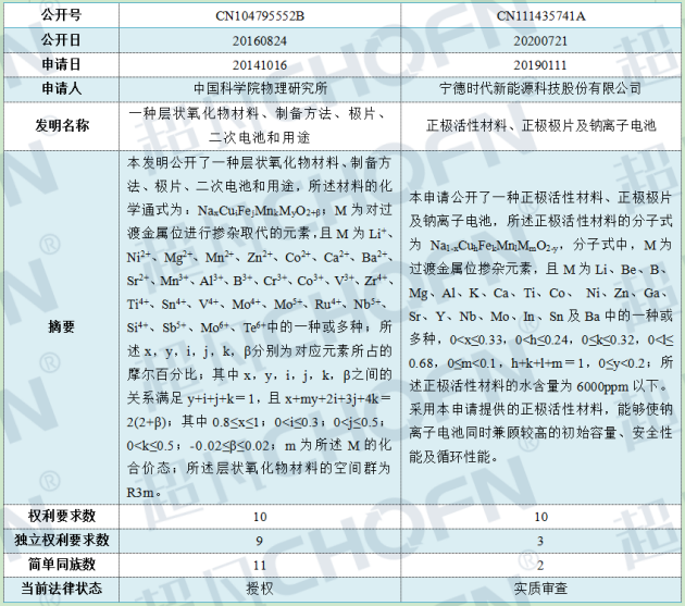 由上述分析中可知,對于鈉離子電池過渡金屬氧化物正極材料,中科院物理所(中科海鈉)不僅申請時間更早,同時其保護范圍更大,專利基礎性更強。