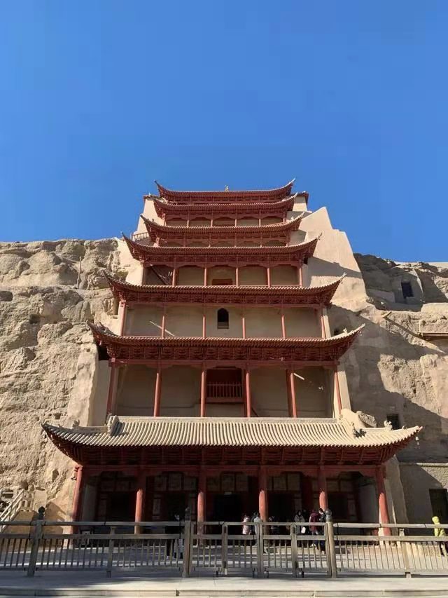 莫高窟標(biāo)志性建筑九層樓(資料照片)。新華社記者 張玉潔 攝