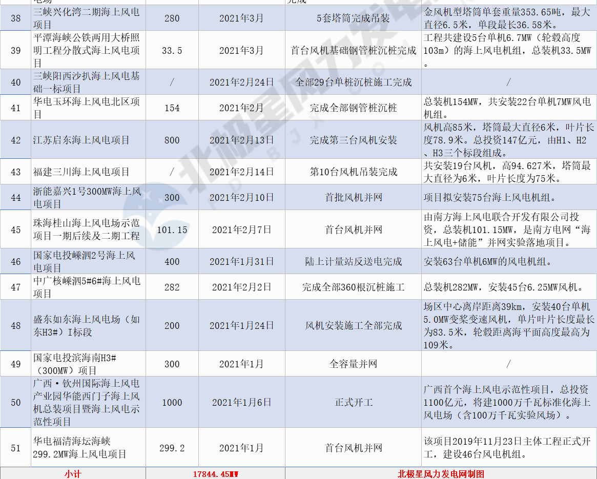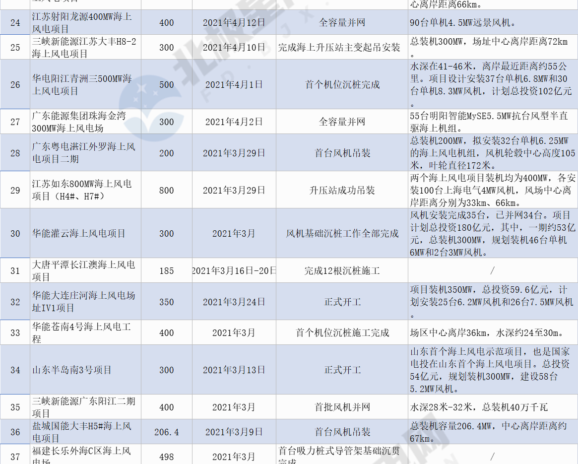 據(jù)北極星風(fēng)力發(fā)電網(wǎng)不完全統(tǒng)計,截止2021年8月30日,共計有51條海上風(fēng)電項目建設(shè)動態(tài),涉及并網(wǎng)、風(fēng)機(jī)吊裝等,裝機(jī)規(guī)模近18GW(17844.45MW)。不同于陸上,海上風(fēng)電環(huán)境復(fù)雜,受天氣影響大,每年平均可施工窗口期僅100多天。2021年最后3個月的沖刺窗口期,海上風(fēng)電建設(shè)的緊張程度可見一斑。
