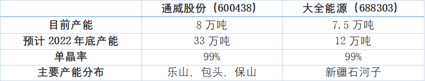 新特能源內(nèi)蒙的10萬噸完全釋放可能要等到2023年,目前單晶占比90%(興業(yè)證券研報)。