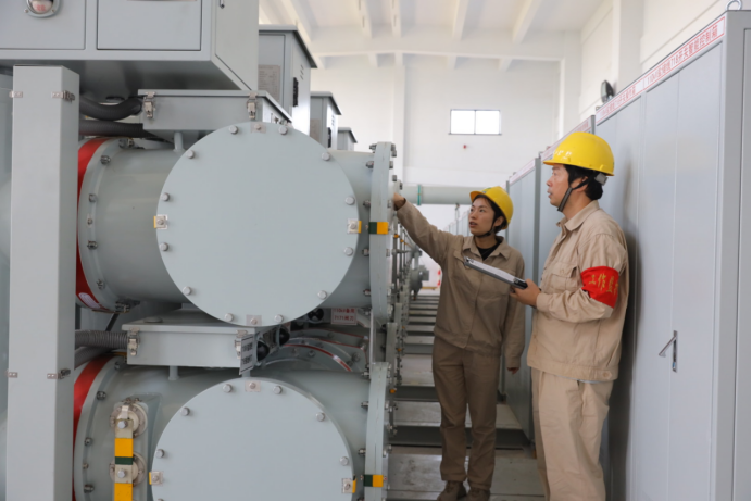 為幫助項目盡早并網發(fā)電,常州供電公司跨前對接,于2020年10月便啟動了進線工程建設。“我們?yōu)閮δ茈娬締为毿陆艘粭l近8公里的110千伏線路,并在220千伏塢家變擴建了一個110千伏間隔,讓電站可以和大電網進行電力交互。”國網常州供電公司項目管理中心副主任張雄偉說。