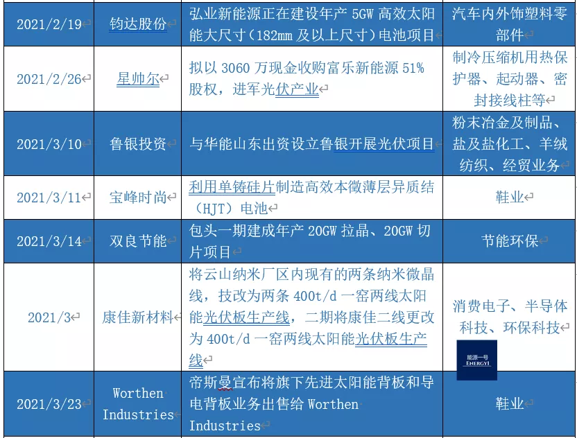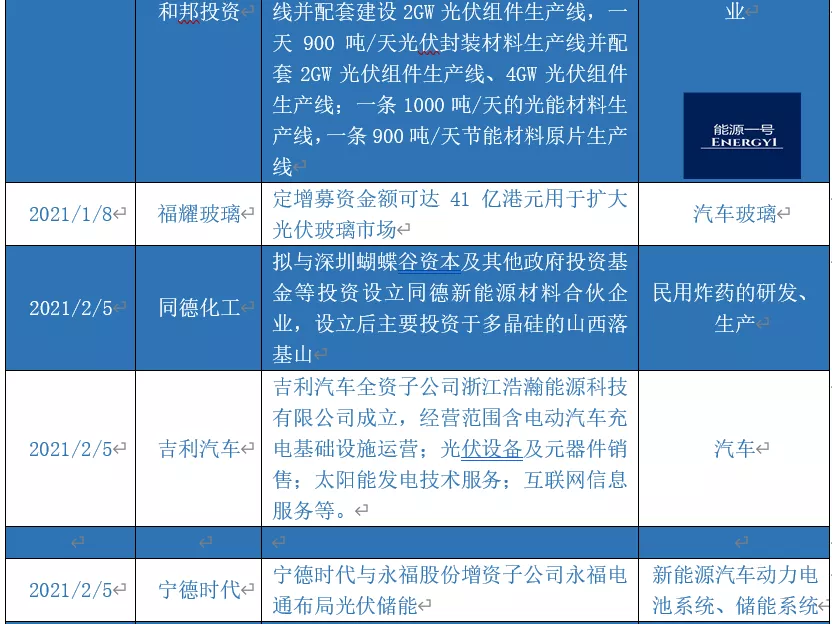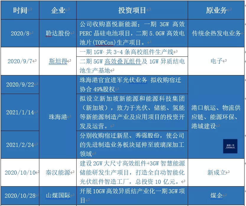碳中和、碳達峰的目標(biāo)確定,讓世界看到了中國光伏產(chǎn)業(yè)的巨大潛力,也讓敏銳的商人們嗅到了商機。能源一號對去年以來一些重大的新投資進行盤點,發(fā)現(xiàn)不少公司正在進入這個蒸蒸日上的行業(yè),同樣,產(chǎn)業(yè)之間的競爭也將更為白熱化。
