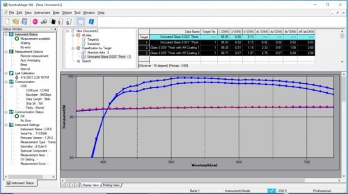 針對(duì)這一點(diǎn),柯尼卡美能達(dá)分光測(cè)色計(jì)可滿足測(cè)量玻璃涂上抗反射涂層前后的光反射率這一需求,幫助客戶精準(zhǔn)評(píng)估涂層性能??履峥滥苓_(dá)傳感事業(yè)部使用分光測(cè)色計(jì)CM-5和電腦軟件Spectramagic NX進(jìn)行對(duì)比試驗(yàn)。其中,紅線作為標(biāo)準(zhǔn)玻璃(即未涂有抗反射圖層的玻璃)數(shù)據(jù)。對(duì)另一件厚度與標(biāo)準(zhǔn)玻璃略有差異的樣品進(jìn)行測(cè)量,也繪制出了與紅線幾乎重合的藍(lán)色光譜曲線。另外兩件樣品涂有抗反射涂層,在360nm至740nm的波長(zhǎng)范圍內(nèi),均顯示出高于標(biāo)準(zhǔn)的透過率。