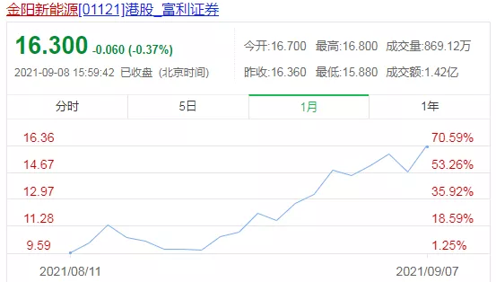 從7月28日更名為金陽(yáng)新能源至今,其股價(jià)已從每股5.0港元上漲至9月8日收盤后的16.30港元,不到兩個(gè)月時(shí)間漲幅就高達(dá)226%。