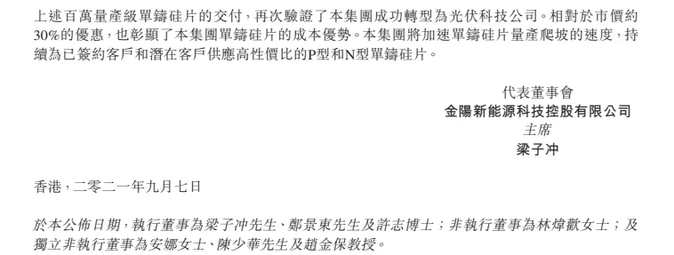 9月7日,金陽(yáng)新能源科技控股有限公司(以下簡(jiǎn)稱“金陽(yáng)新能源”)公布業(yè)務(wù)發(fā)展最新情況!