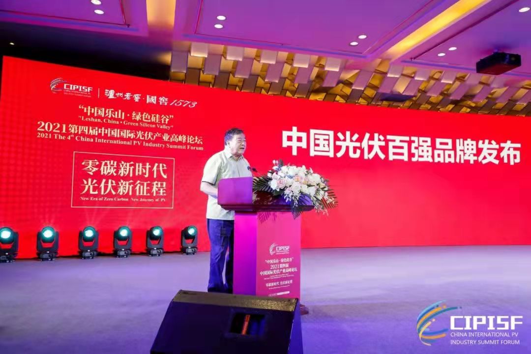 國務(wù)院原參事、中國可再生能源學(xué)會理事長石定寰發(fā)布“中國光伏百強品牌”。