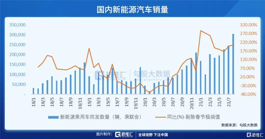 汽車行業(yè)一般有金九銀十的說法,即四季度的銷量會比前三季度要更好,通過1-8月的銷量數(shù)據(jù)推測,2021年全年國內(nèi)新能源汽車銷量300萬輛是可以預(yù)見的,而如果更樂觀的預(yù)測,可能會落在310-320萬輛左右。對于年初乘聯(lián)會200萬輛的銷量預(yù)測,已經(jīng)上調(diào)超過50%。