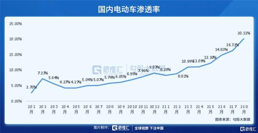 說完銷量,來看看最關(guān)心的滲透率。新能源汽車1-8月滲透率12.8%。8月滲透率(批發(fā)量數(shù)據(jù))達到20.1%,7月滲透率為16.32%,滲透率環(huán)比大幅上升,同時這也是第一次新能源汽車國內(nèi)滲透率破20%。滲透率在經(jīng)過了一年的緩慢爬坡之后,開始進入加速階段。市場上更有券商大膽預(yù)測,實現(xiàn)25%的滲透率或許不是在2025年,很有可能會在2022年提前到來。
