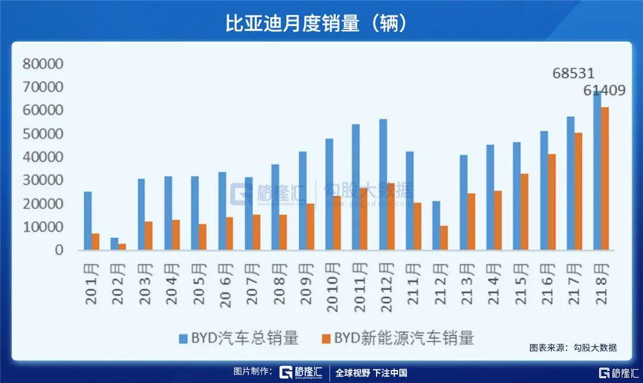 值得一提的是比亞迪8月新能源乘用車銷量再創(chuàng)歷史新高,達到67630輛,同比增漲331.9%,環(huán)比增長21%。其中DM車型銷量30126輛,純電銷量30382輛。電動車銷量60508輛;燃油車銷量7122輛。